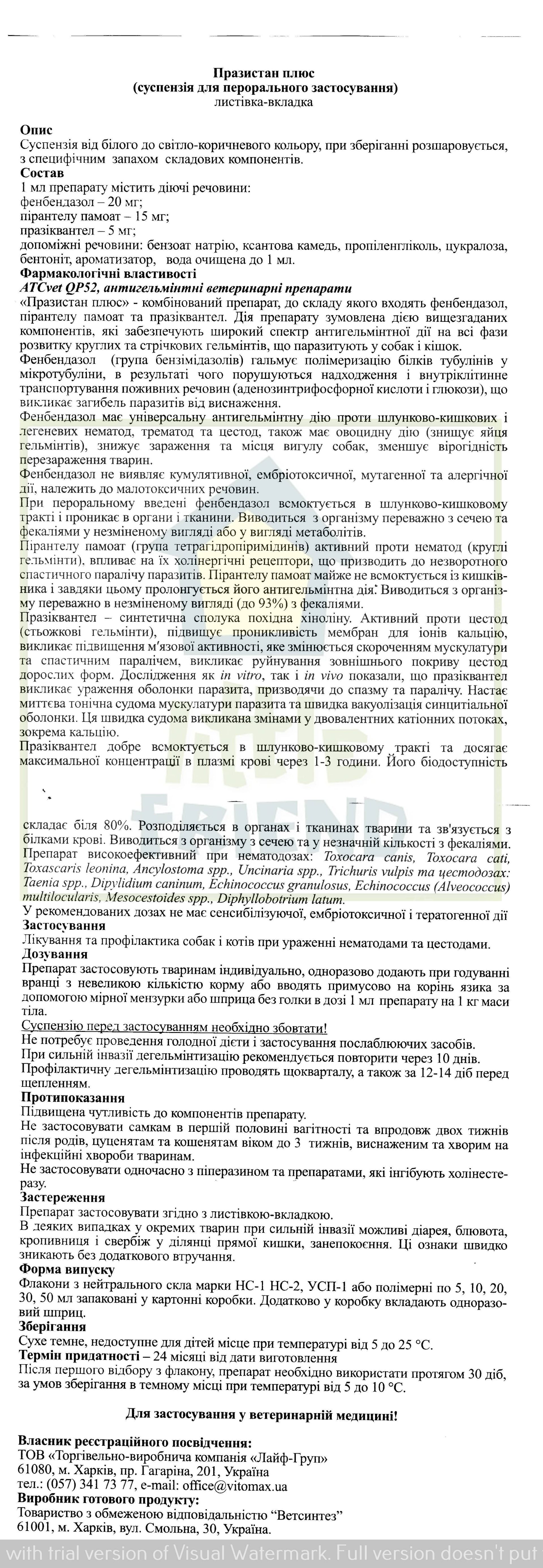 Празистан - комбинированный препарат, в состав которого входят пирантела памоат, празиквантел и фенбендазол. Действие препарата обусловлено действием вышеуказанных компонентов, которые обеспечивают широкий спектр антигельминтного действия на все фазы развития круглых и ленточных гельминтов, паразитирующих у котов.