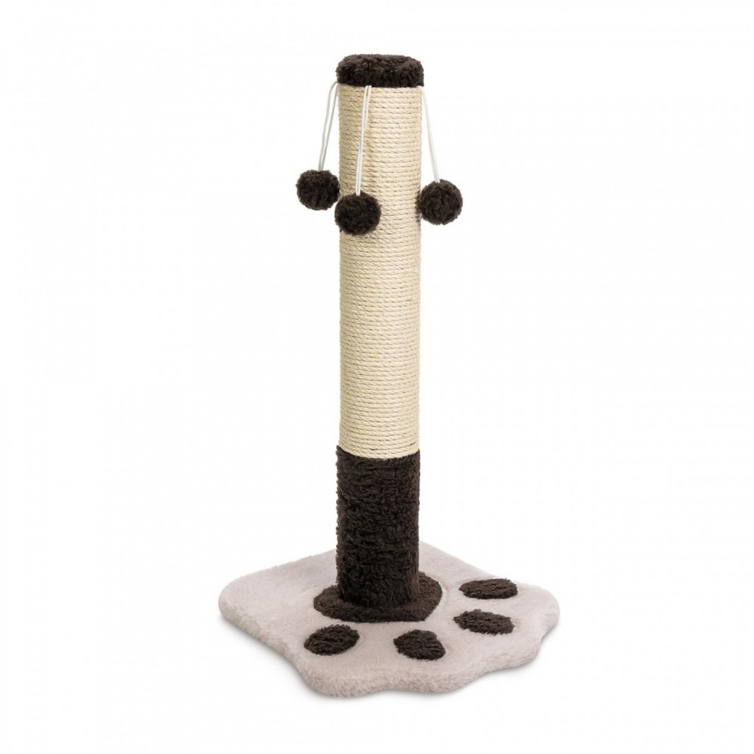 Это не просто когтеточка - это настоящий кошачий мир, где можно точить когти, потягиваться, прыгать, охотиться на пушистые помпоны, а затем сладко дремать на мягкой просторной платформе. Высокий столбик, обмотанный натуральным сизалем из волокна агавы, дарит идеальное место для стачивания когтей без ущерба для мебели или обоев. Четыре игривые помпоны вверху - это ежедневная доза развлечений и увлечения как для любознательных котят, так и для взрослых муркотиков. Основание - прочное и широкое, обтянутое приятным на ощупь искусственным мехом - выдержит даже самые энергичные кошачьи забавы.