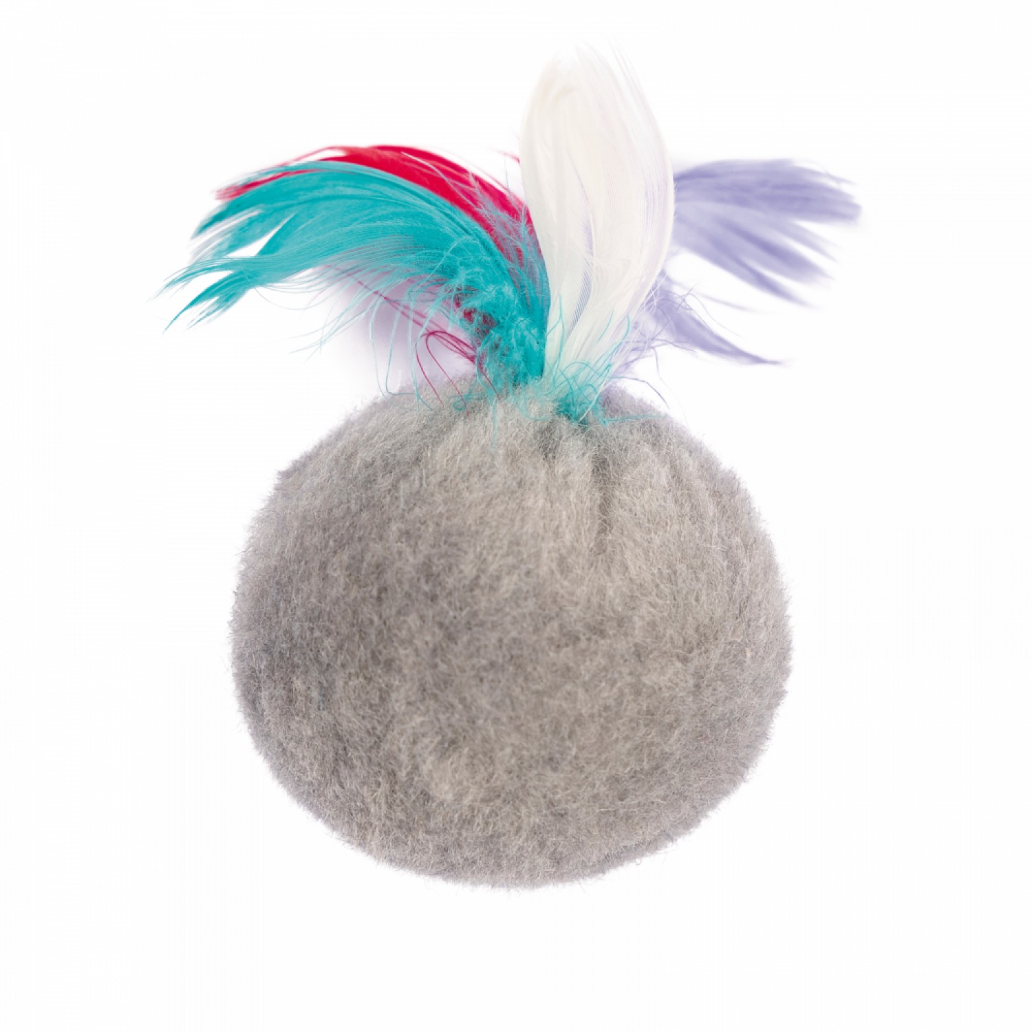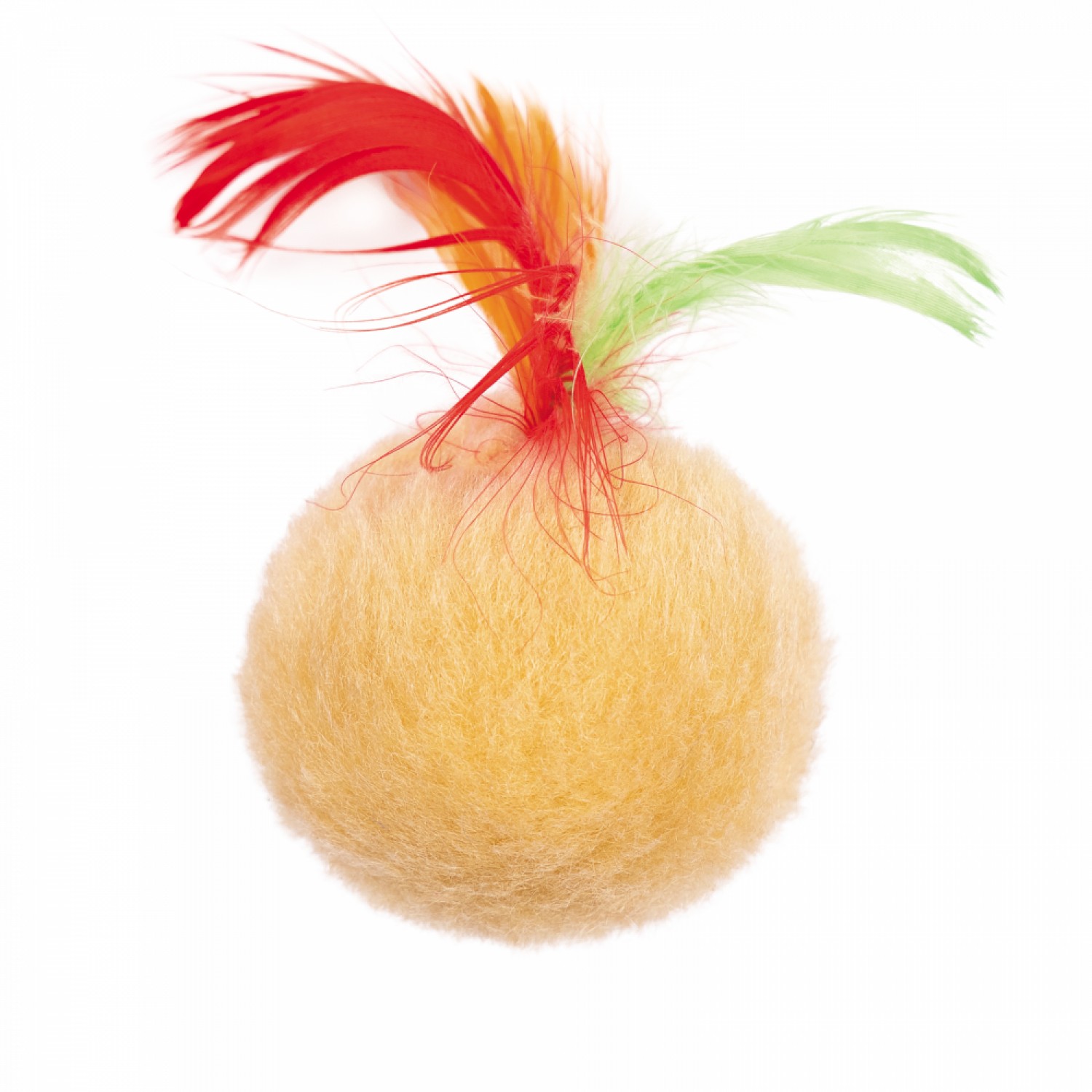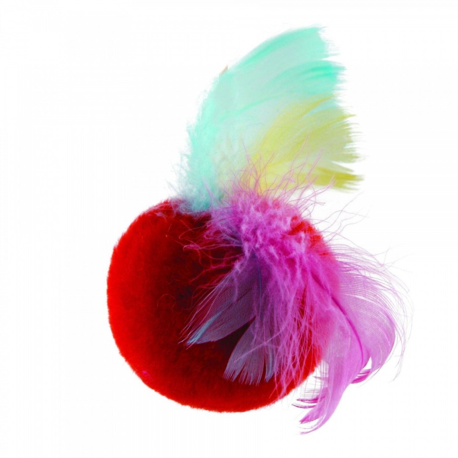 Мягкий мячик изготовлен из искусственного меха, украшен перьями и придется по вкусу котам всех возрастов.