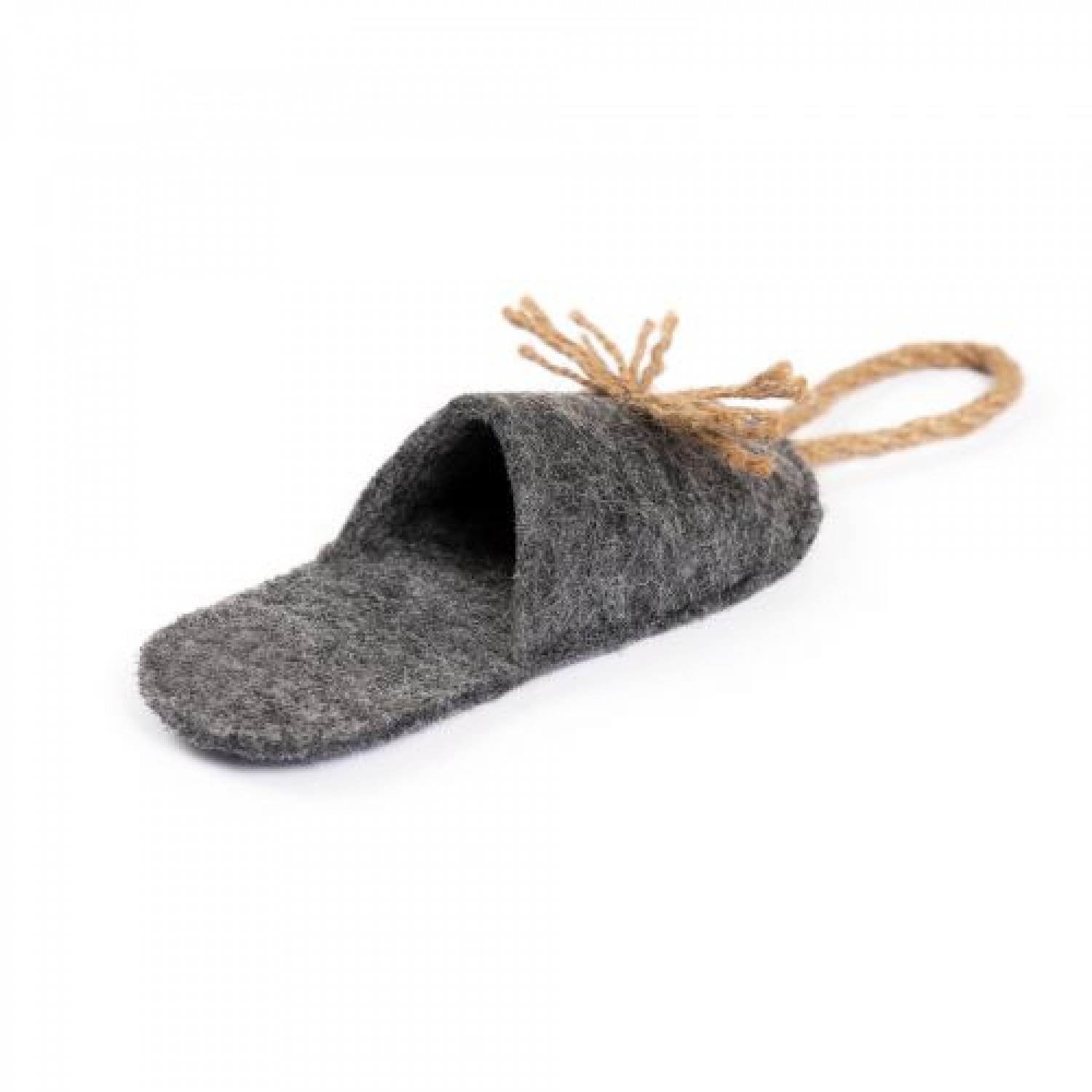 Мягкая войлочная "Пантофля с канатом" - отличная игрушка для щенков и небольших собак, потому что ее можно носить с собой, грызть, играть вволю и положить рядом в лежачке. Если хотите отвлечь питомца от своей обуви, предложите ему эту игрушку.