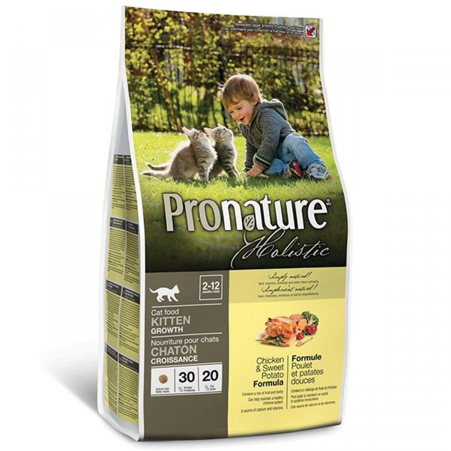 Формула роста для котят Pronature Holistic Kitten Chicken & Sweet Potato PRONATURE HOLISTIC с курицей и сладким картофелем. Сухой холистический корм для котят от 2 до 12 месяцев. Уникальная рецептура делает корм для котят полноценным, вкусным и способствует здоровью и гармоничному развитию организма в целом.