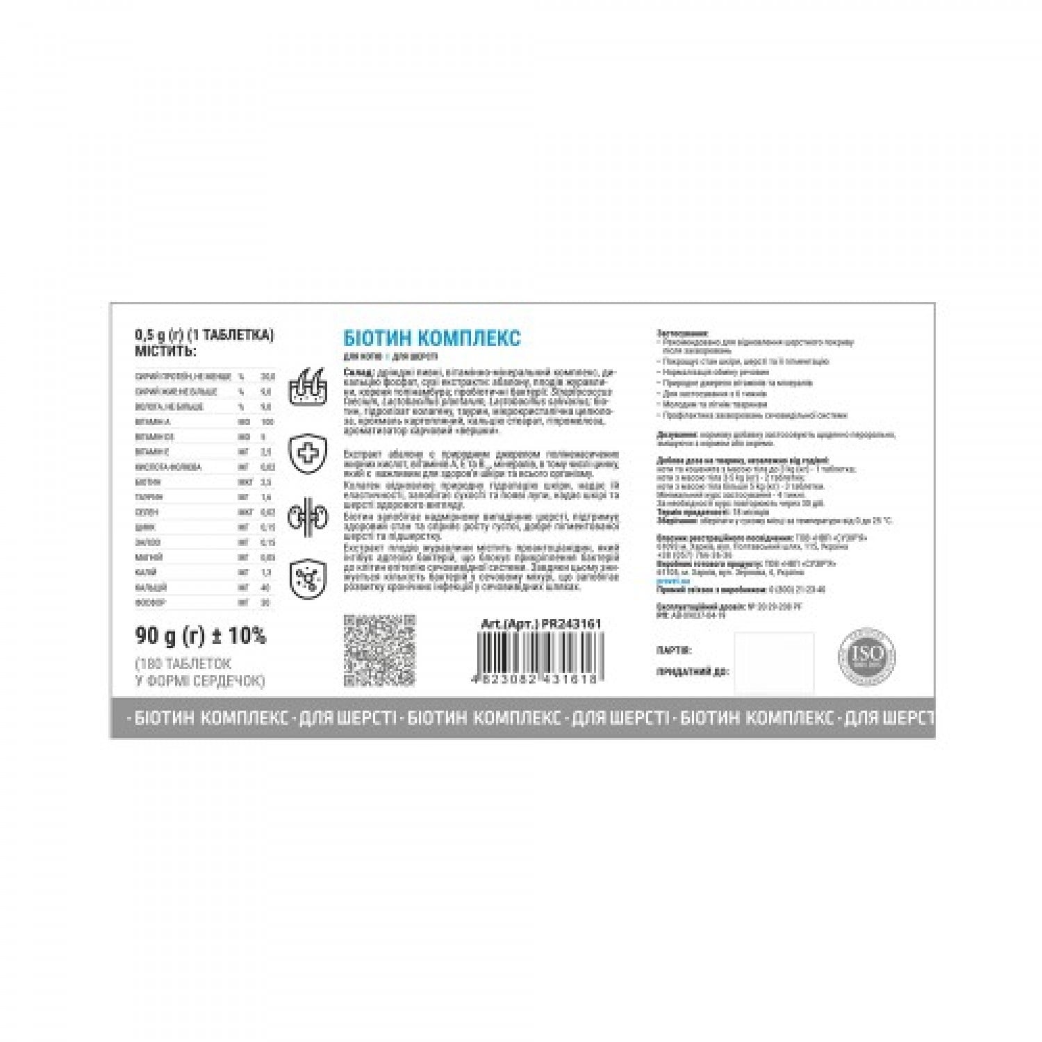 Биотин предотвращает чрезмерное выпадение шерсти, поддерживает здоровое состояние и способствует росту густой, хорошо пигментированной шерсти и подшерстку. Экстракт плодов клюквы содержит проантоцианидин, ингибирующий адгезию бактерий, блокирующий прикрепление бактерий к клеткам эпителия мочевыводящей системы. Благодаря этому снижается количество бактерий в мочевом пузыре, что предотвращает развитие хронических инфекций в мочевыводящих путях.