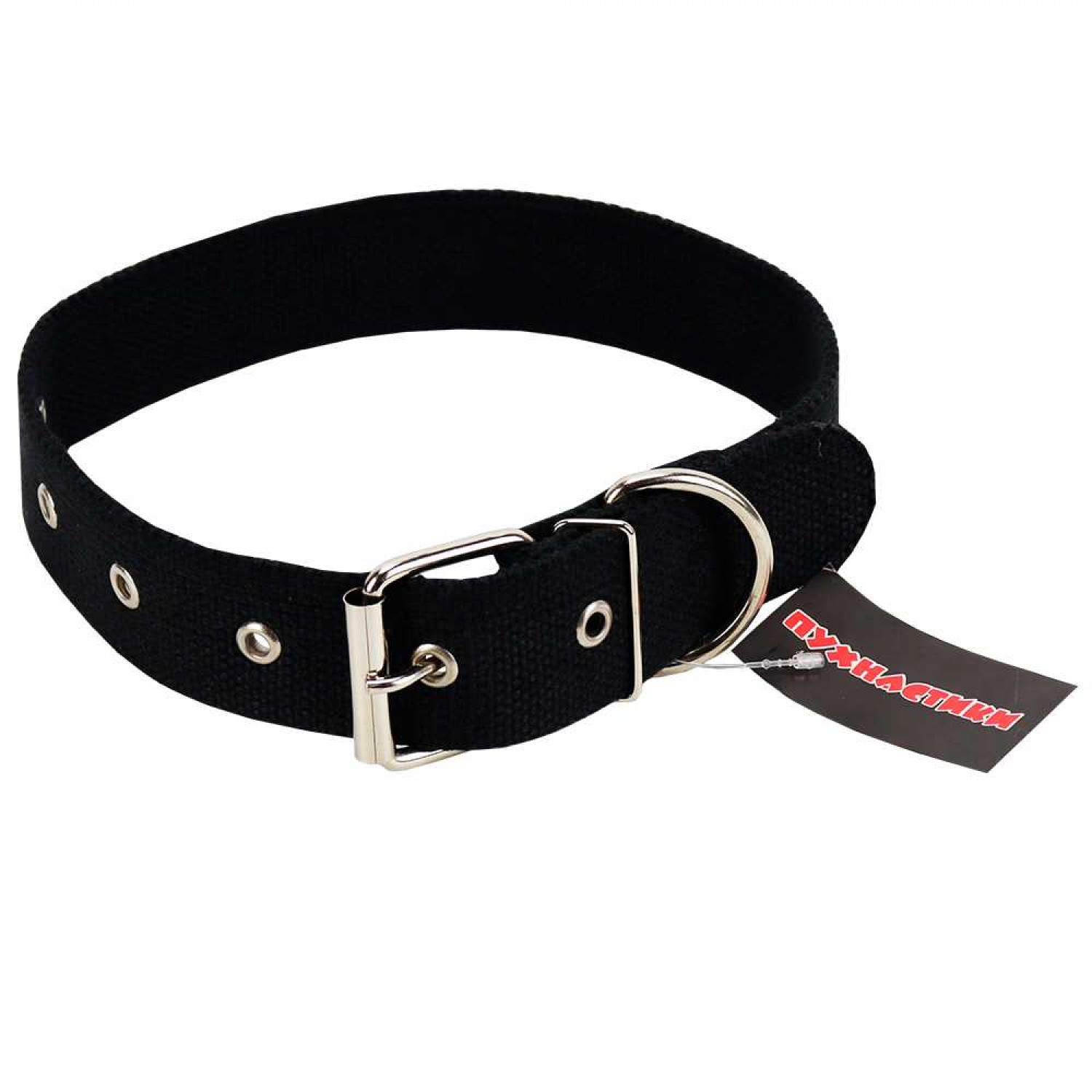 Мягкий ошейник из хлопкового брезента. Максимально удобный аксессуар, надежно крепится на шее питомца и совершенно не утяжеляет ее.