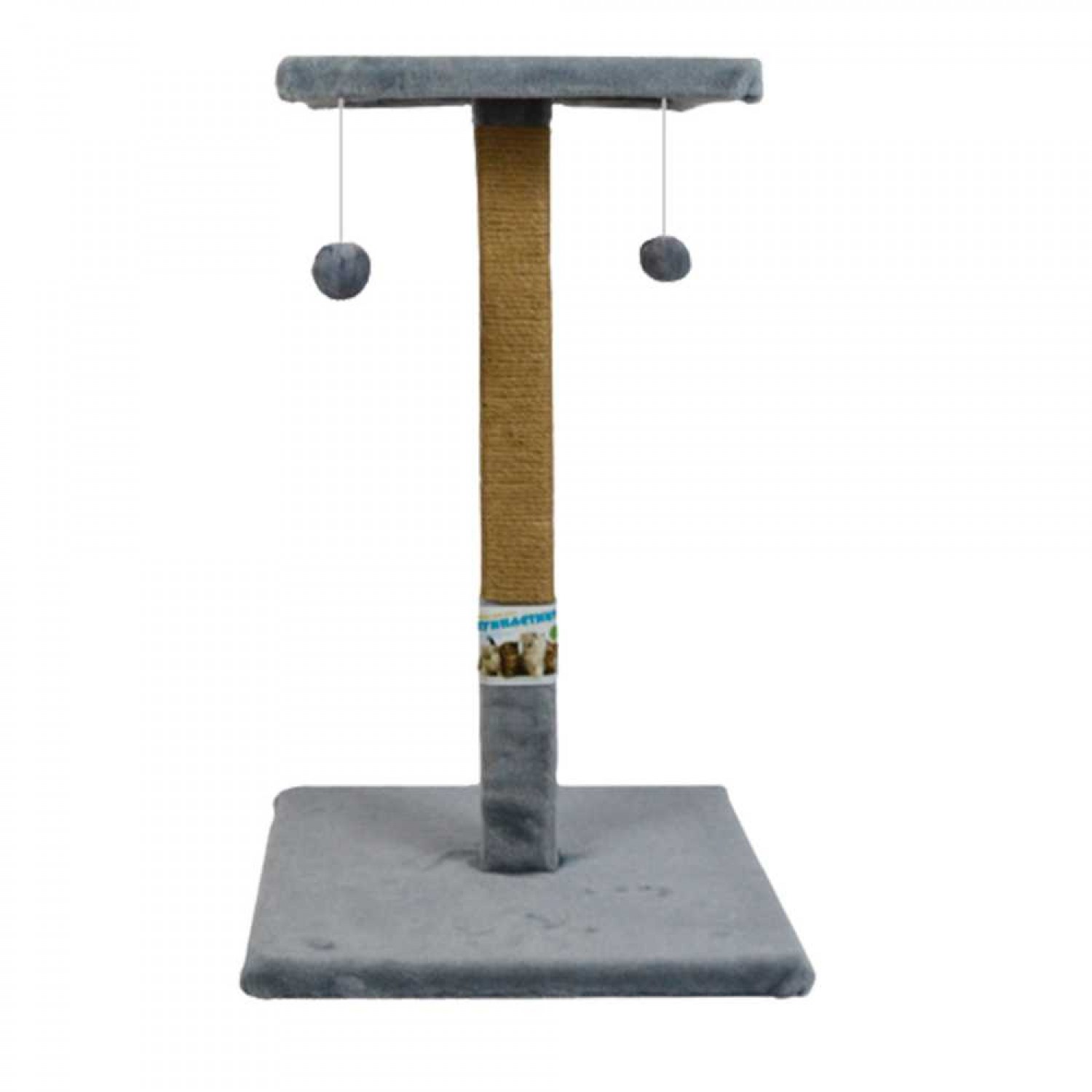 Пухнастики когтеточка для котов большой столбик с полкой (джут) серая.