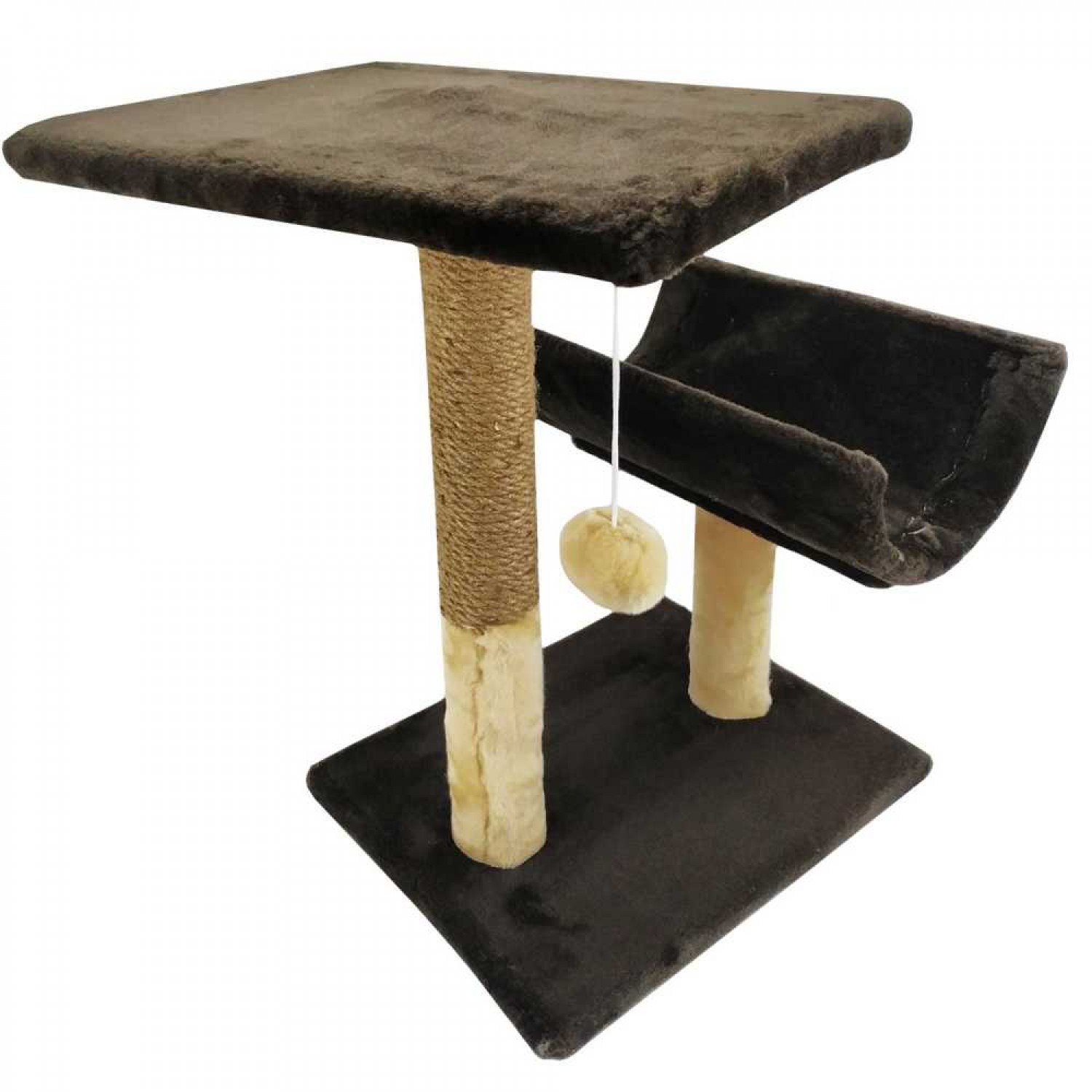 Пухнастики когтеточка для котов с полкой и полутуннелем (джут) шоколад с бежевым.