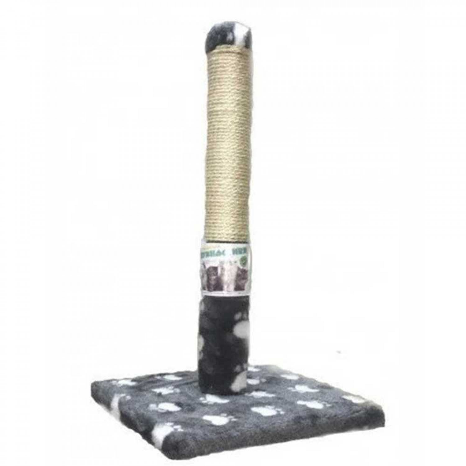 Пухнастики когтеточка для котов столбик на подставке (джут) серая с лапками.
