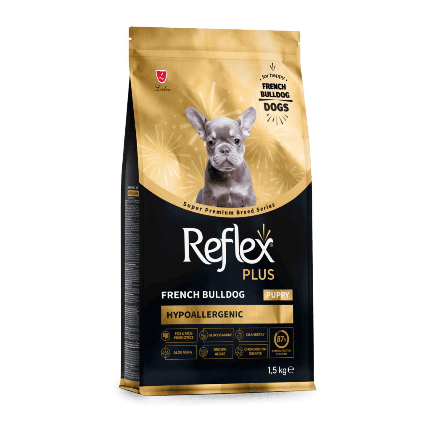 Reflex Plus French Bulldog Puppy - это полноценный, сбалансированный и гипоаллергенный сухой корм супер-премиум класса, разработанный специально для щенков породы французский бульдог в возрасте от 2 до 10 месяцев. Формула корма учитывает все особенности развития этой породы: от поддержания здорового пищеварения до правильного формирования мышц, суставов и укрепления иммунитета в период активного роста. Качественный животный белок обеспечивает энергию и способствует хорошему набору массы, а омега-3 и омега-6 жирные кислоты поддерживают здоровую кожу и блестящую шерсть. Специально подобранная форма гранул облегчает восхищение и жевание, а добавленные пребиотики, витамины и минералы создают надежную основу для здорового старта жизни вашего щенка.