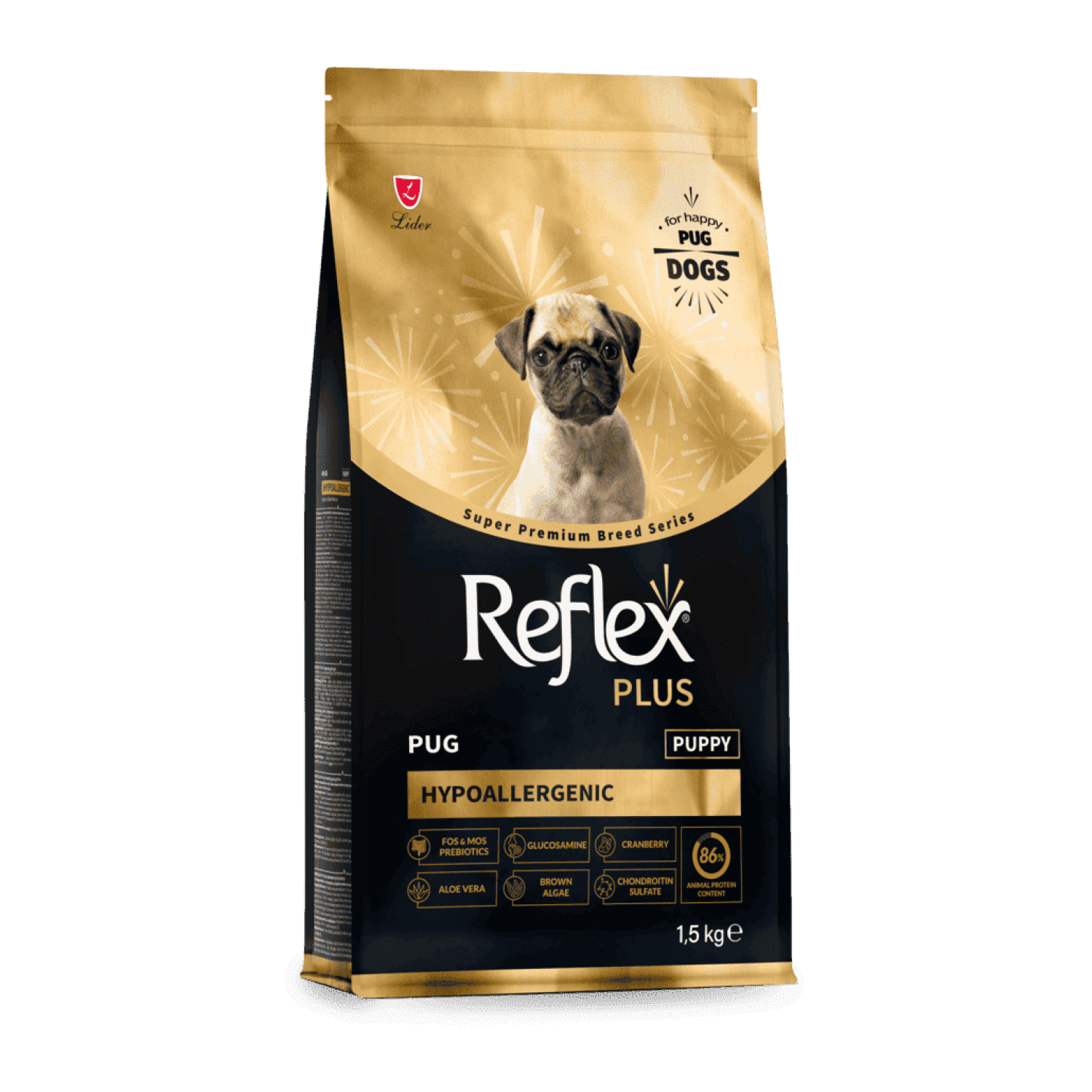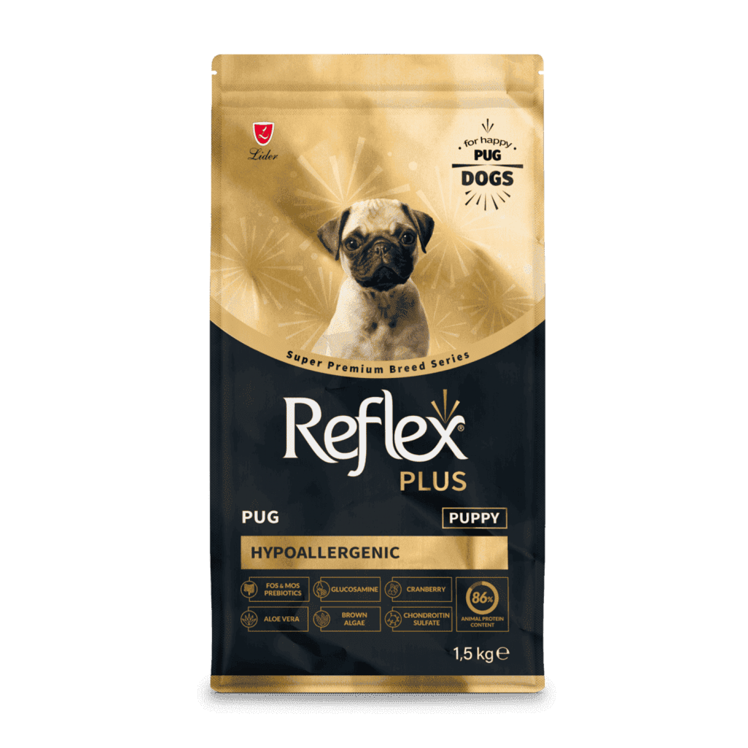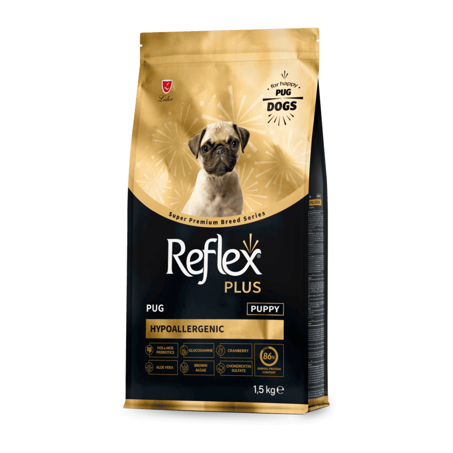 Reflex Plus Puppy Pug - это идеальный старт для здоровой, активной жизни вашего щенка мопса.