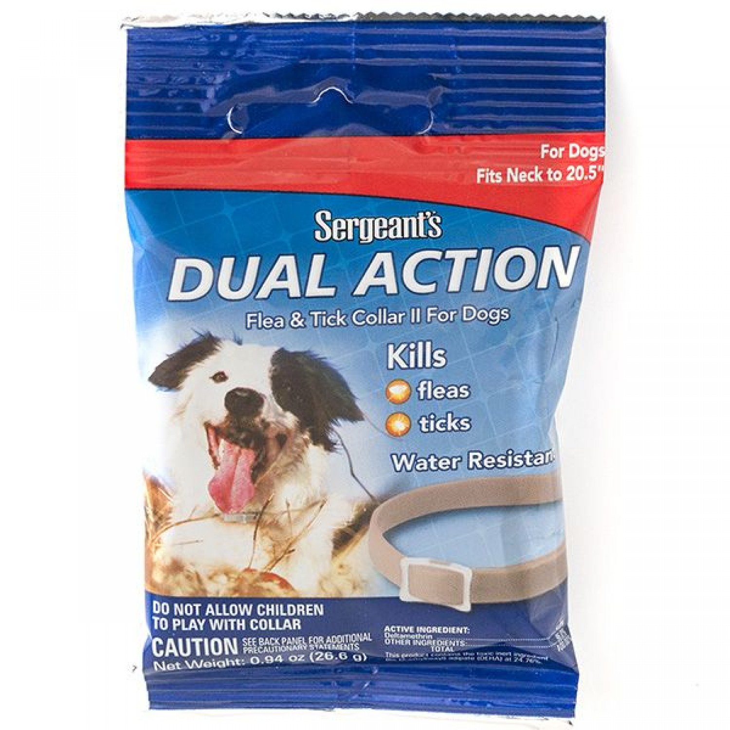 Противоблошиный ошейник Sentry Sergeants Dual Action содержит активное вещество дельтаметрин - инсектицид пиретроидов 2 поколения контактного действия. Он действует как нейротоксин на центральную и периферическую нервную систему эктопаразитов: блох, клещей, власоедов, мух, вшей, клопов, то есть фактически блокирует нервные импульсы в организме насекомых, вызывая у них паралич и гибель.