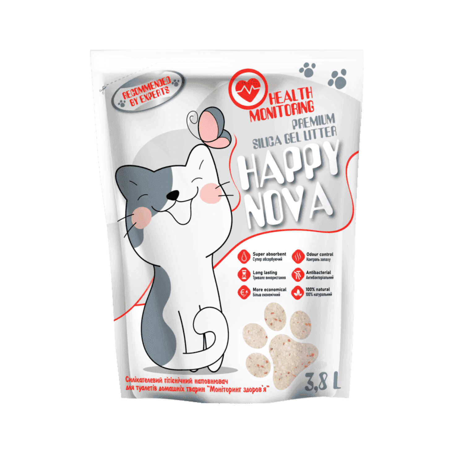 ТМ "Happy Nova" Health Monitoring силикагелевый гигиенический наполнитель для туалетов домашних животных "Мониторинг здоровья".