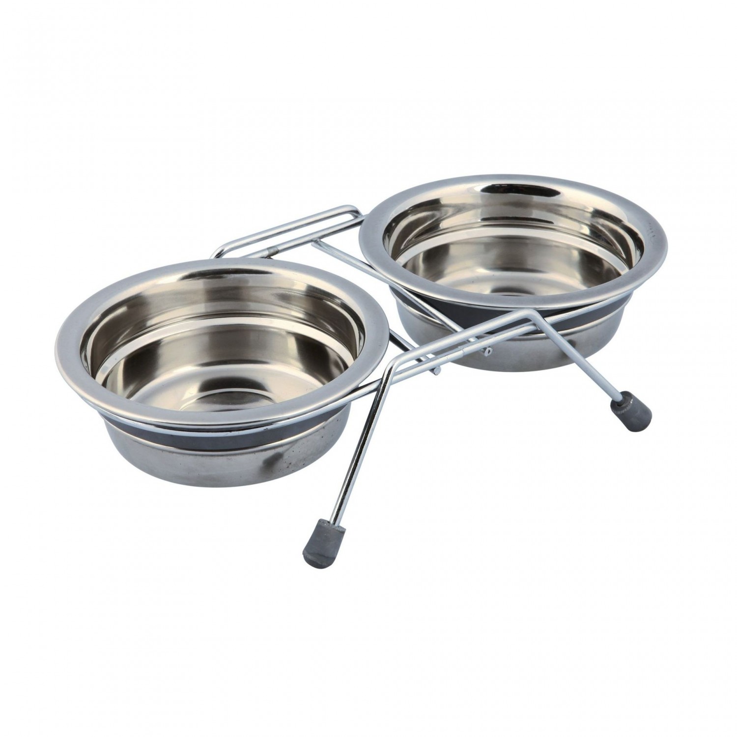 Миски металлические на подставке Trixie с шумовыми заглушками «Eat on Feet» - разработка знаменитого немецкого бренда товаров для животных Trixie, которое станет прекрасным дополнением для заботы о питомце. Данная подставка под миски добавит удобств для кормления вашего питомца. С подставками меньше возможности испачкать пол под едой,благодаря регулировке высоты, животному не придется наклонятся, а для питомцев, страдающих заболеваниями шеи или спины, это станет настоящим спасением. Благодаря тому, что миска поднята над землей, питомец тратит меньше сил на потребление пищи,заглатывая меньшее количество воздуха, вследствие чего и газообразование понижается. Подставки под миски - идеальный вариант не только для пожилых и больных животных, а и в принципе для любого питомца, ведь подставки сохранят здоровье животного и чистоту в доме!