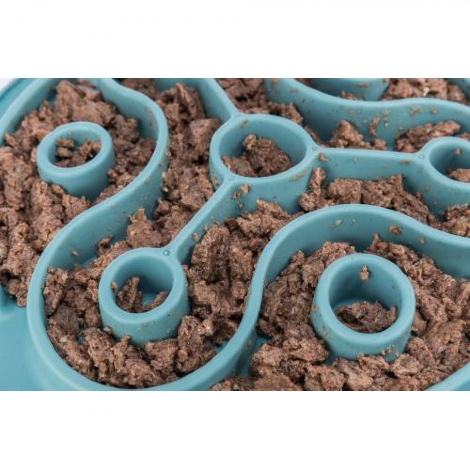 Медленное поедание корма является отличным способом предупредить у вашего питомца переедание и вызванные им проблемы - чрезмерное газообразование, ожирение. Прекрасным помощником для организации процесса медленного поедания станет этот коврик от Trixie.