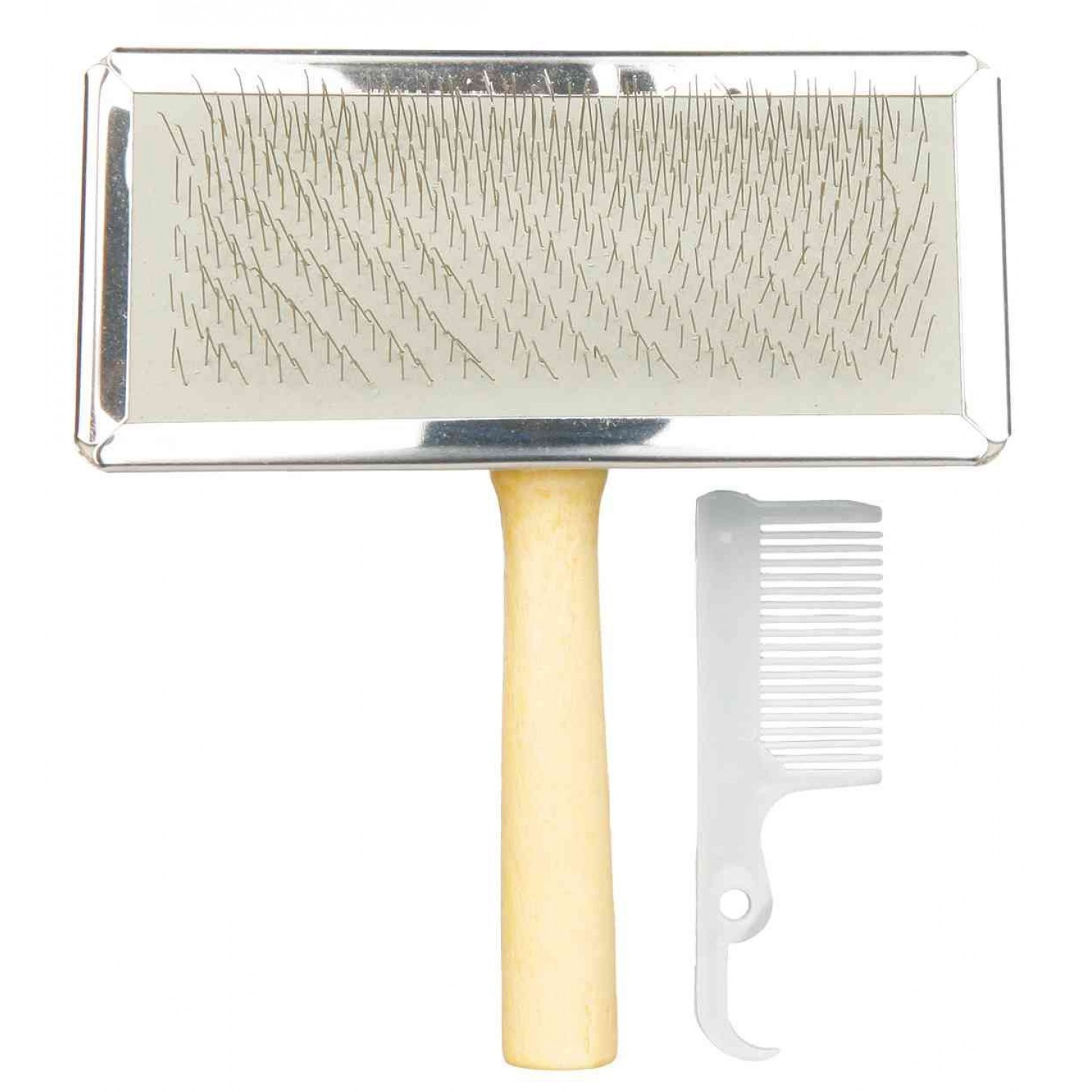Немецкий бренд зоотоваров Trixie предлагает вам Щётка-пуходёрка с деревянной ручкой и пластиковая расчёска.