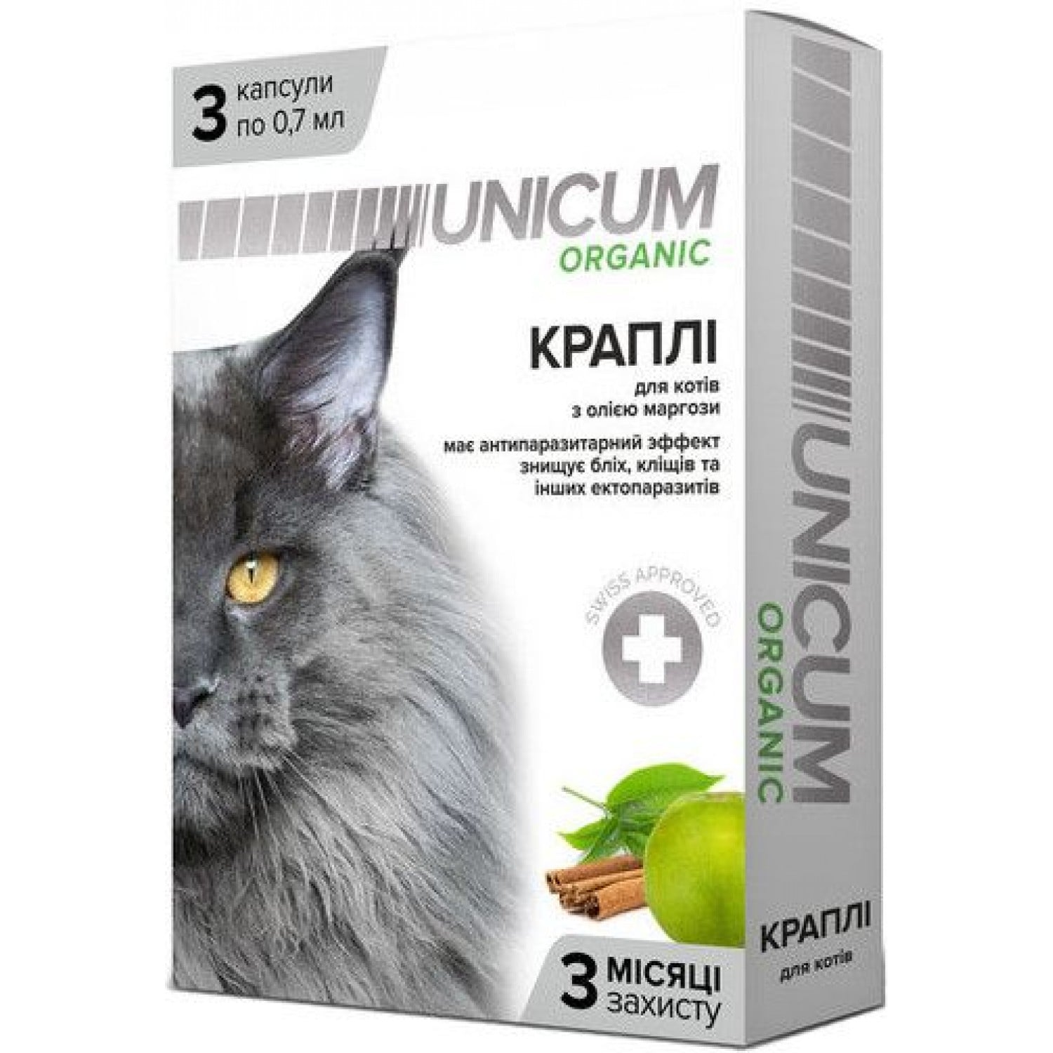 Unicum ORGANIC капли на натуральной основе для отпугивания блох и клещей для кошек.