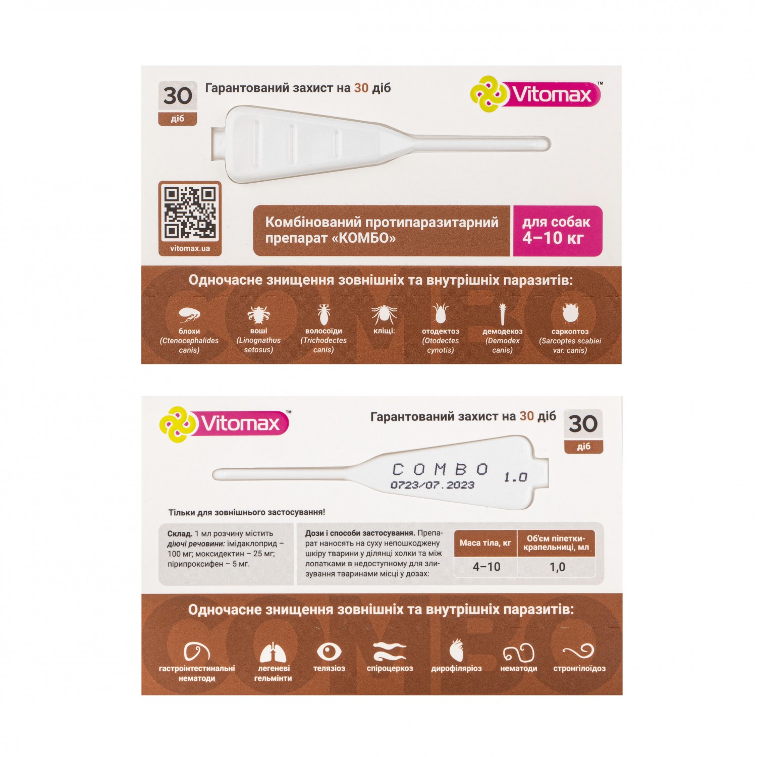 Vitomax Combo капли от экто- и эндо-паразитов для собак от 4 до 10 кг.