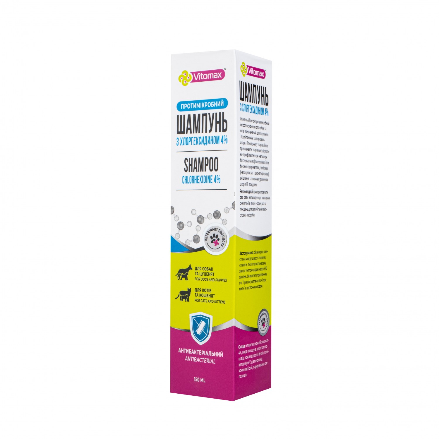 Vitomax противомикробный шампунь с хлоргексидином 4% для кошек и собак.
