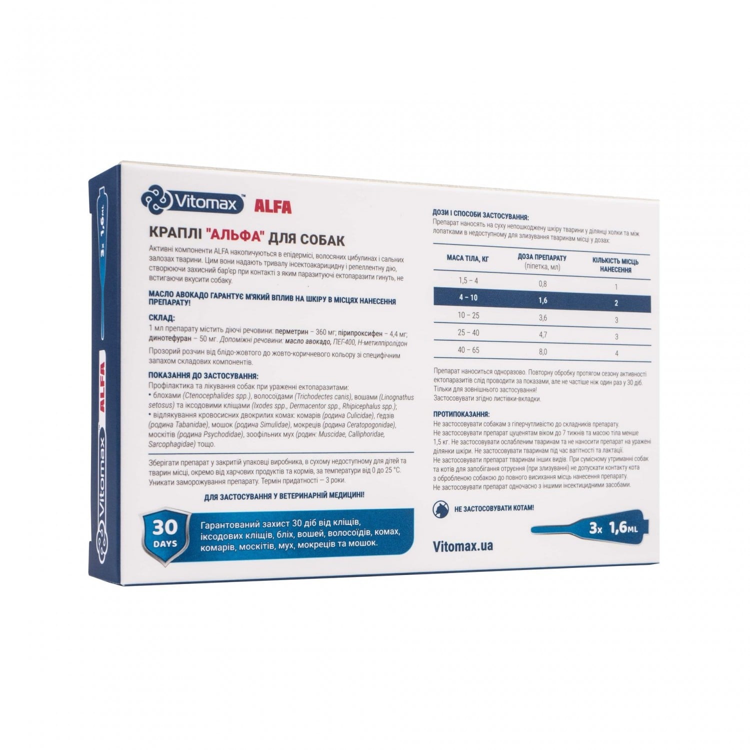 Vitomax (Витомакс) Alfa капли для собак от 4 до 10 кг. 1.6мл