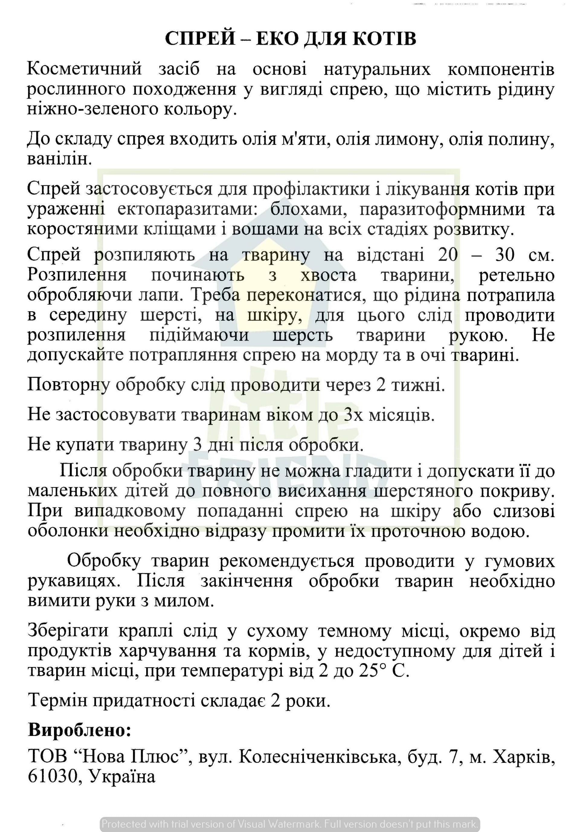 ЭКО - спрей Vitomax - натуральный аэрозоль против блох и клещей, а также гигиеническое средство для котов.