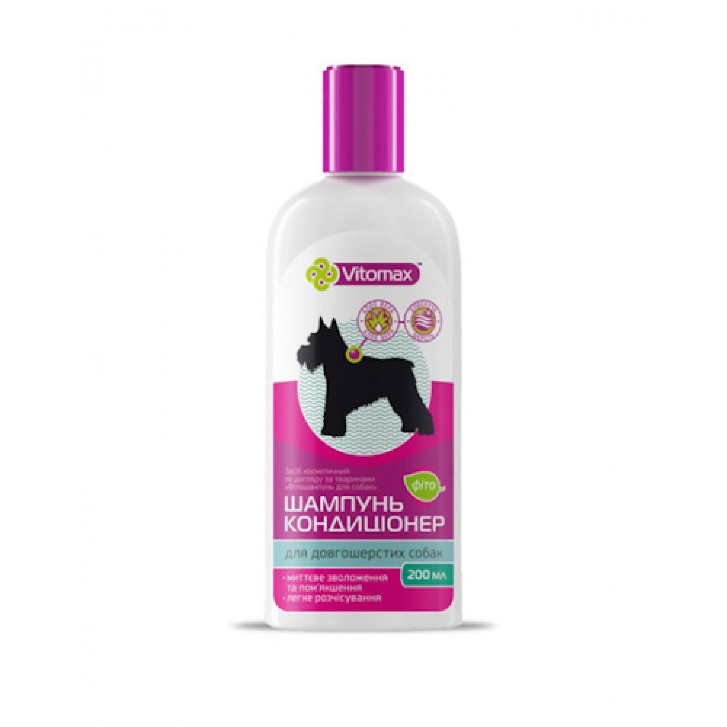 Фитошампунь ТМ Vitomax - натуральный шампунь-кондиционер для длинношерстных собак на основе экстрактов растений, полезных для кожи и шерсти. Имеет противопаразитарный эффект. Фитошампунь состоит исключительно из натуральных и природных компонентов, которые положительно влияют на шерсть и кожу домашнего животного.