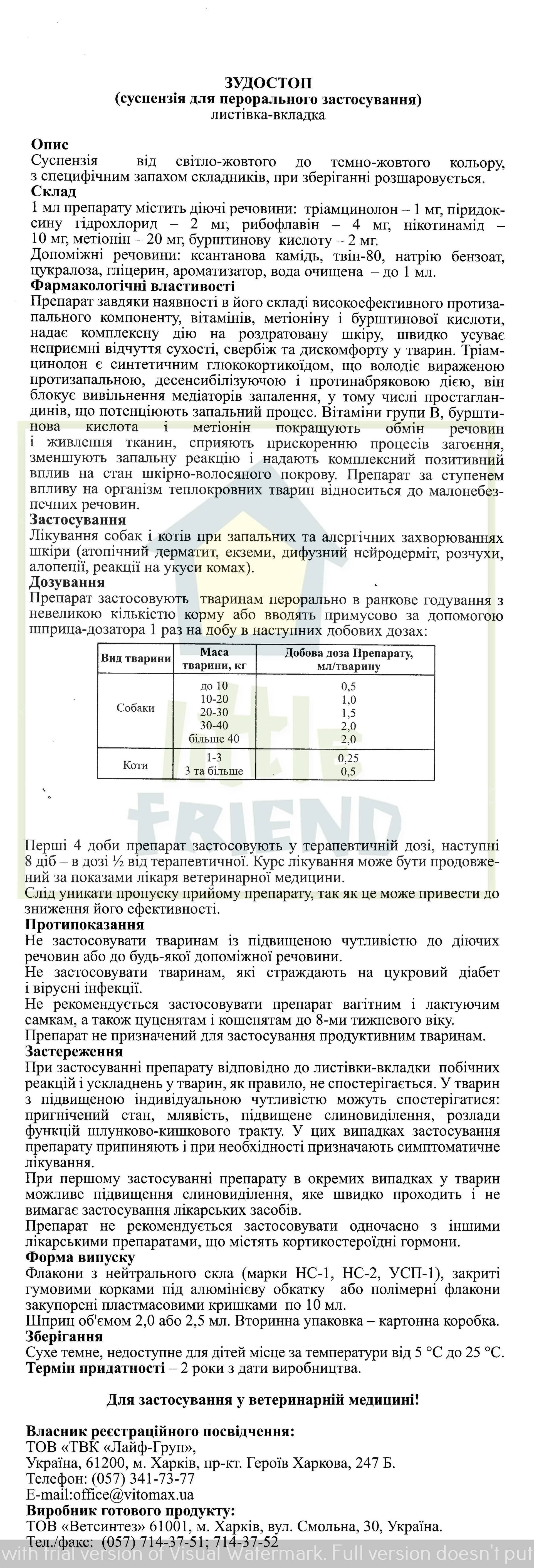 Высокоэффективный гормональный ветеринарный препарат Зудостоп предназначен для лечения при воспалительных и аллергических заболеваниях кожи (атопический дерматит, экземы, диффузный нейродермит, расчесы, алопеции, реакции на укусы насекомых).