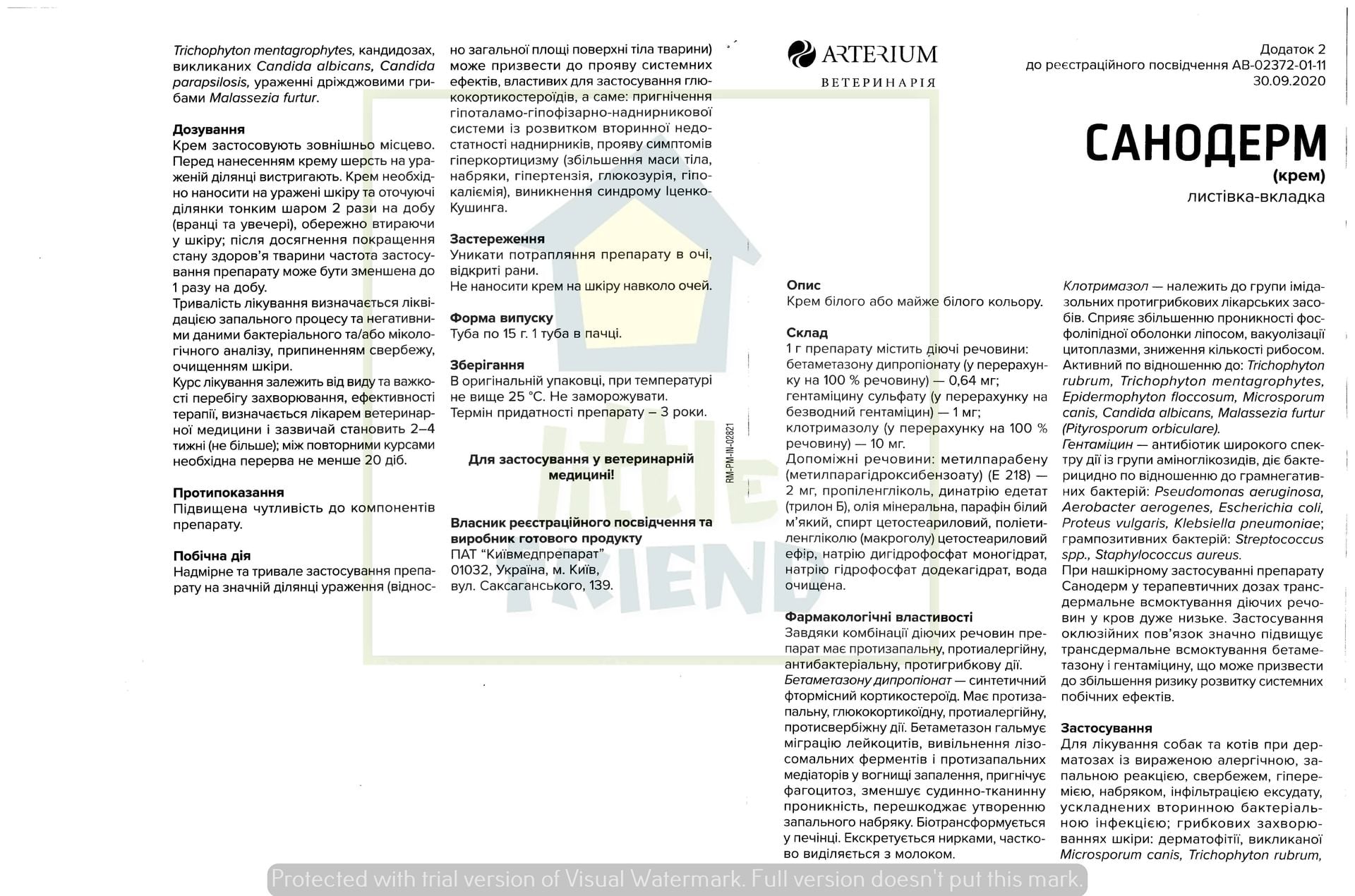 Санодерм мазь для лікування дерматомікозів у собак та котів