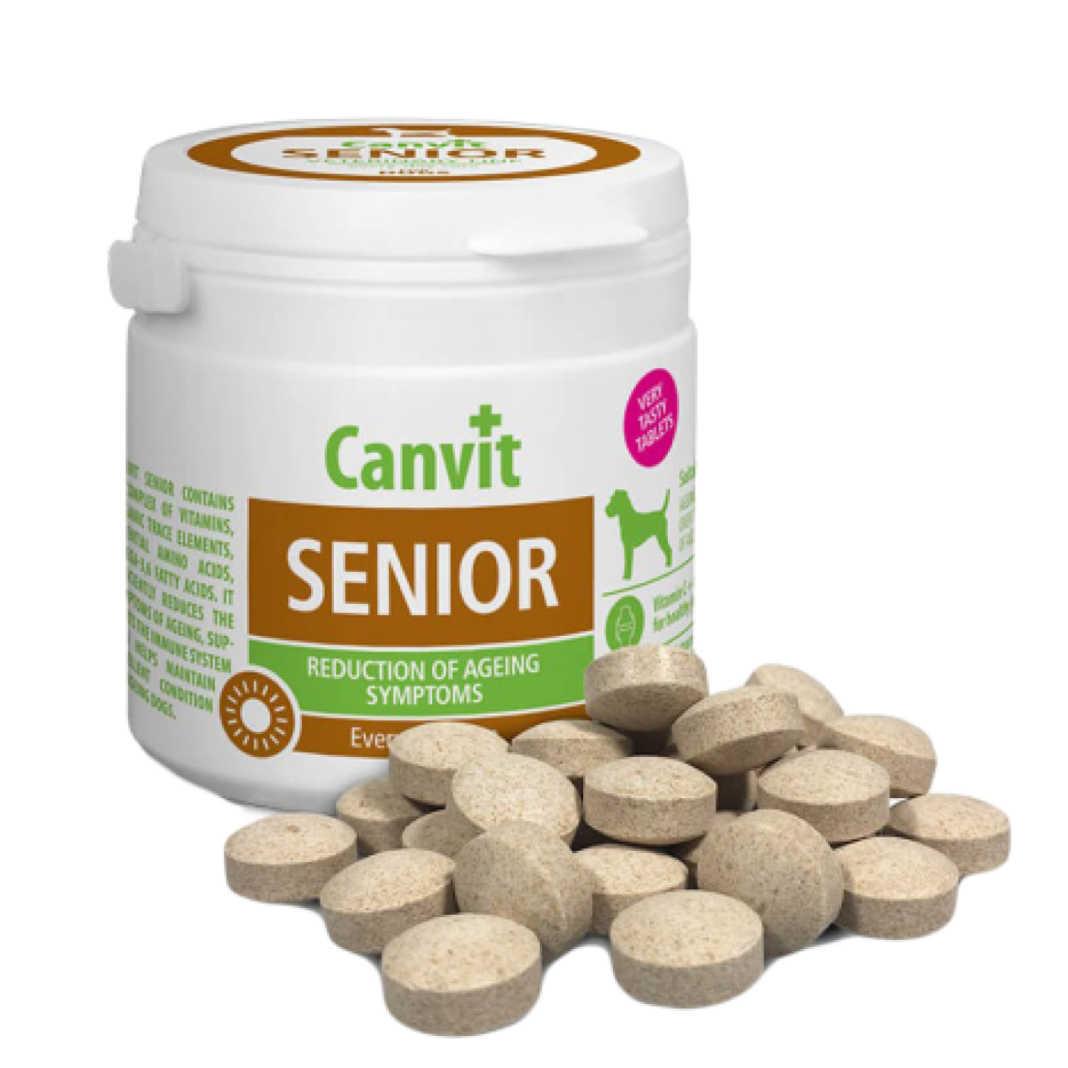 Комплекс вітамінів Canvit Senior необхідний для уповільнення процесів старіння і підтримки загального здоров'я та активності собак старше 7 років. Канвіт Сеньйор містить комплекс вітамінів, мікроелементів органічній хелатовій формі, незамінних амінокислот та поліненасичених жирних кислот Омега-3,6. Ефективно уповільнює ознаки старіння, підтримує імунну систему, забезпечує відмінну кондицію, та допомагає підтримувати м’язову масу. Підвищений вміст антиоксидантів попереджає старіння.
