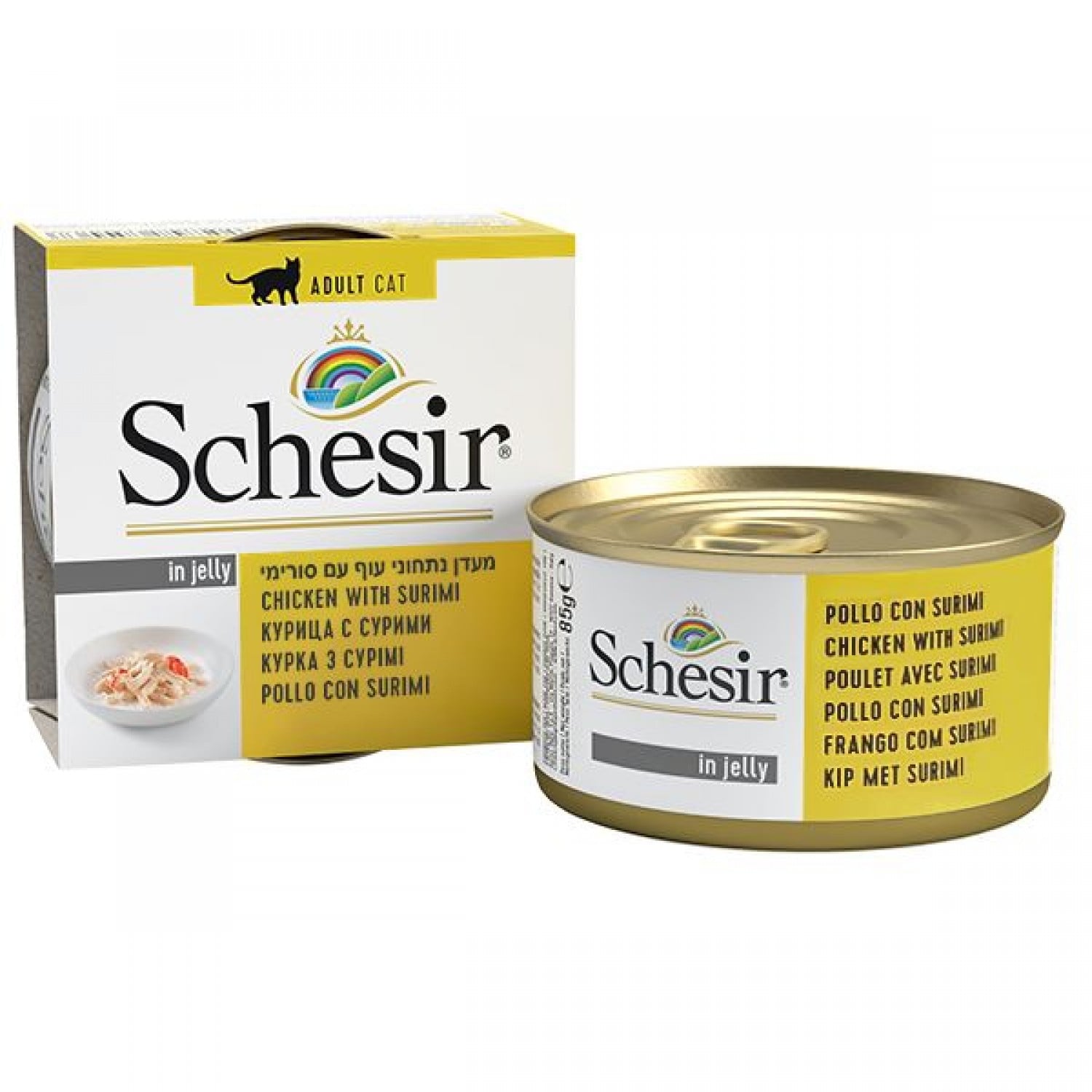 Schesir Chicken Surimi вологий корм для дорослих котів зі шматочками курки та сурімі.