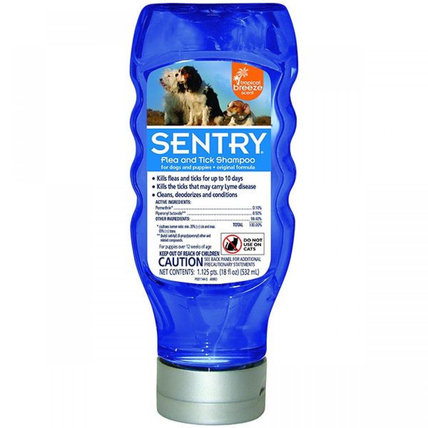 Шампунь від бліх та кліщів для собак та цуценят Sentry Tropical Breeze вбиває бліх та кліщів на строк до 10 днів. У тому числі, вбиває кліщів, які можуть бути переносниками хвороби Лайма, завдяки наявності у складі високоефективних інгредієнтів.