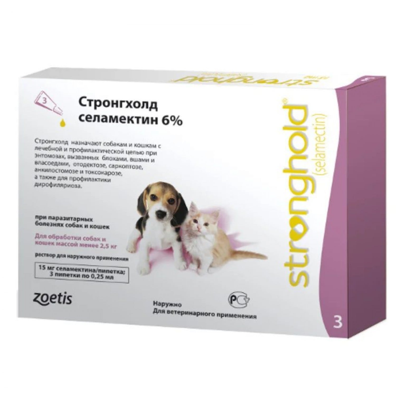 Протипаразитарний препарат широкого спектра дії на основі селамектина для кошенят і цуценят віком старше 6 тижнів і вагою до 2,5 кг.