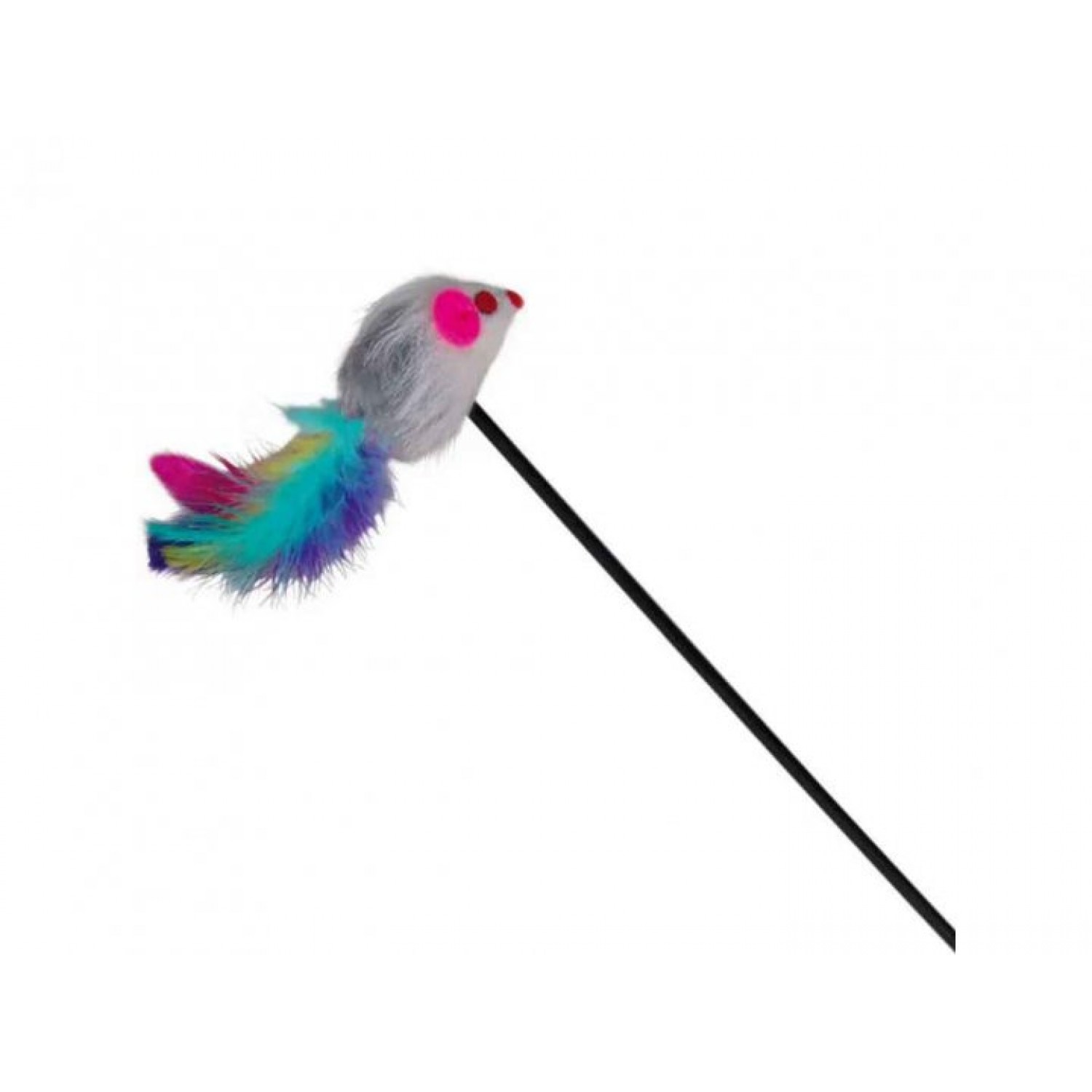 - Мишка має пір'яний хвостик, яким легко полоскотати мордочку кота для залучення уваги.