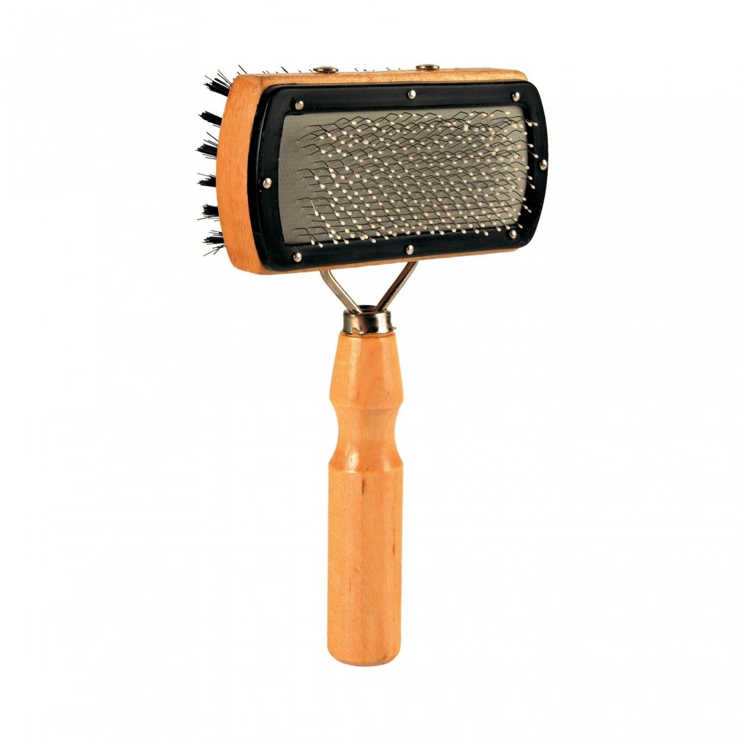 Trixie пуходерка двостороння для догляду за шерстю та підшерстком котів і собак різних порід з дерев’яною ручкою.