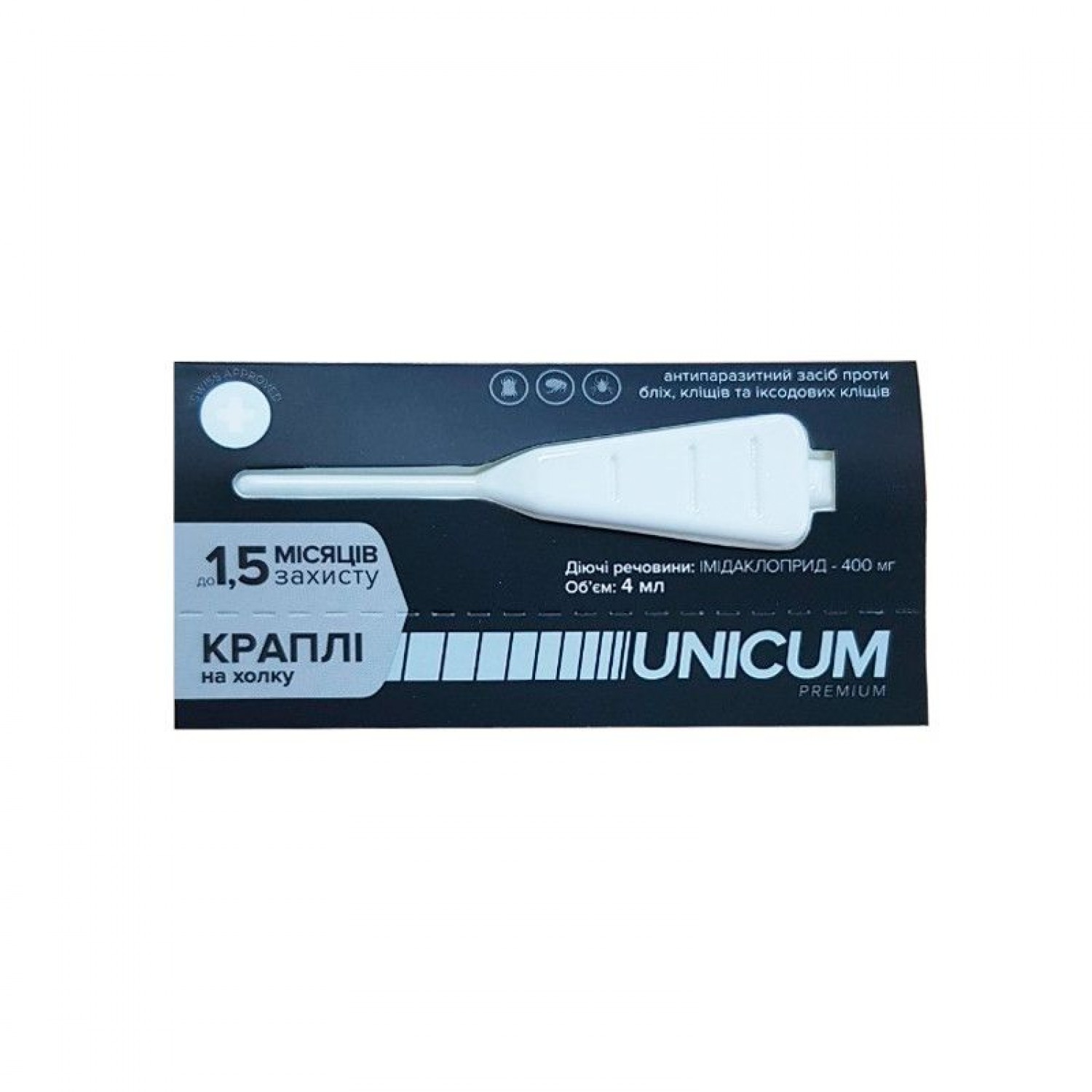 Краплі Unicum Premium для собак від бліх і кліщів - це лікарський препарат преміального класу, що володіє знезаражувальною та профілактичною діями при боротьбі з багатьма комахами, котрі докучають вихованцеві.