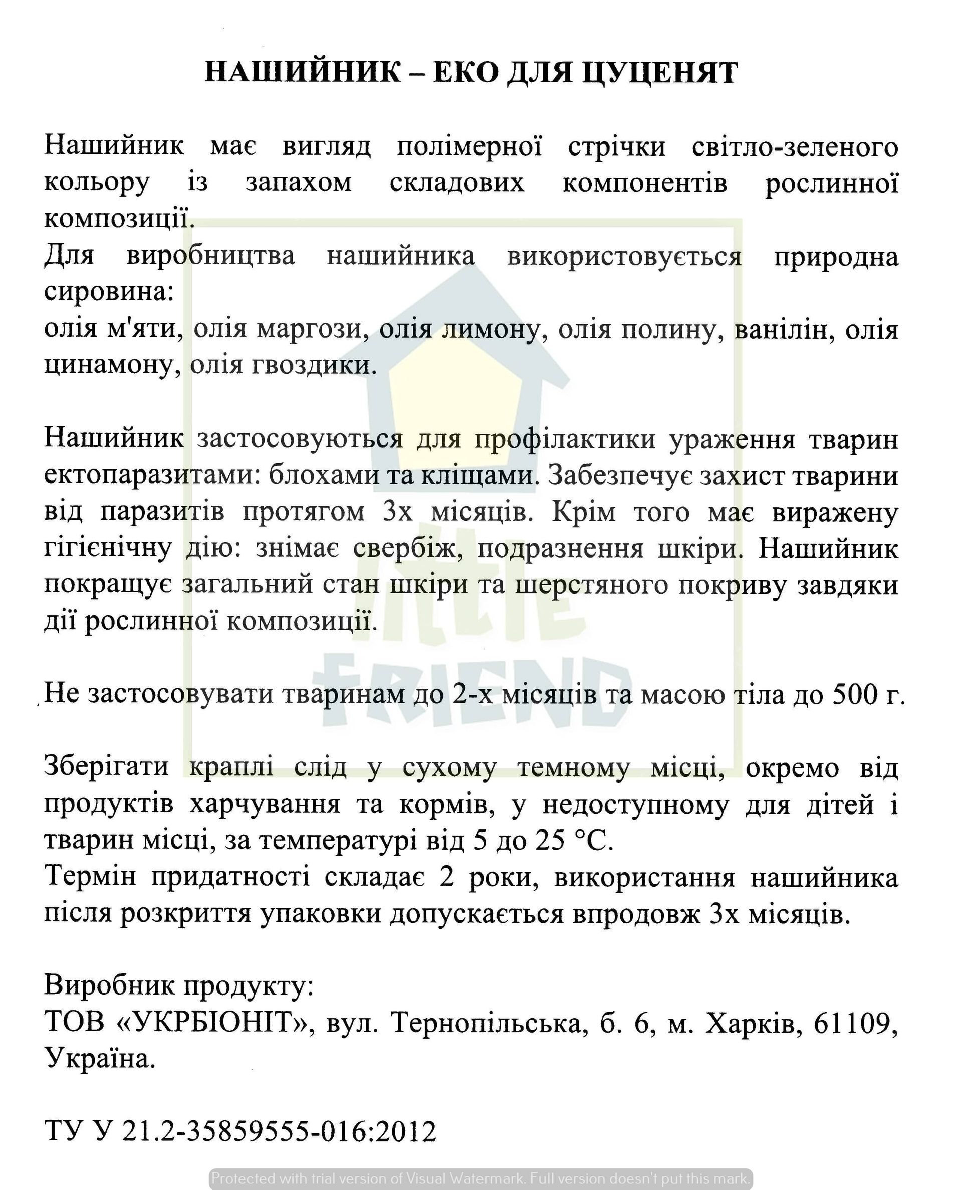 Нашийник є натуральним, безпечним і швидкодіючим засобом для відлякування та знищення бліх, кліщів, вошей та інших ектопаразитів.